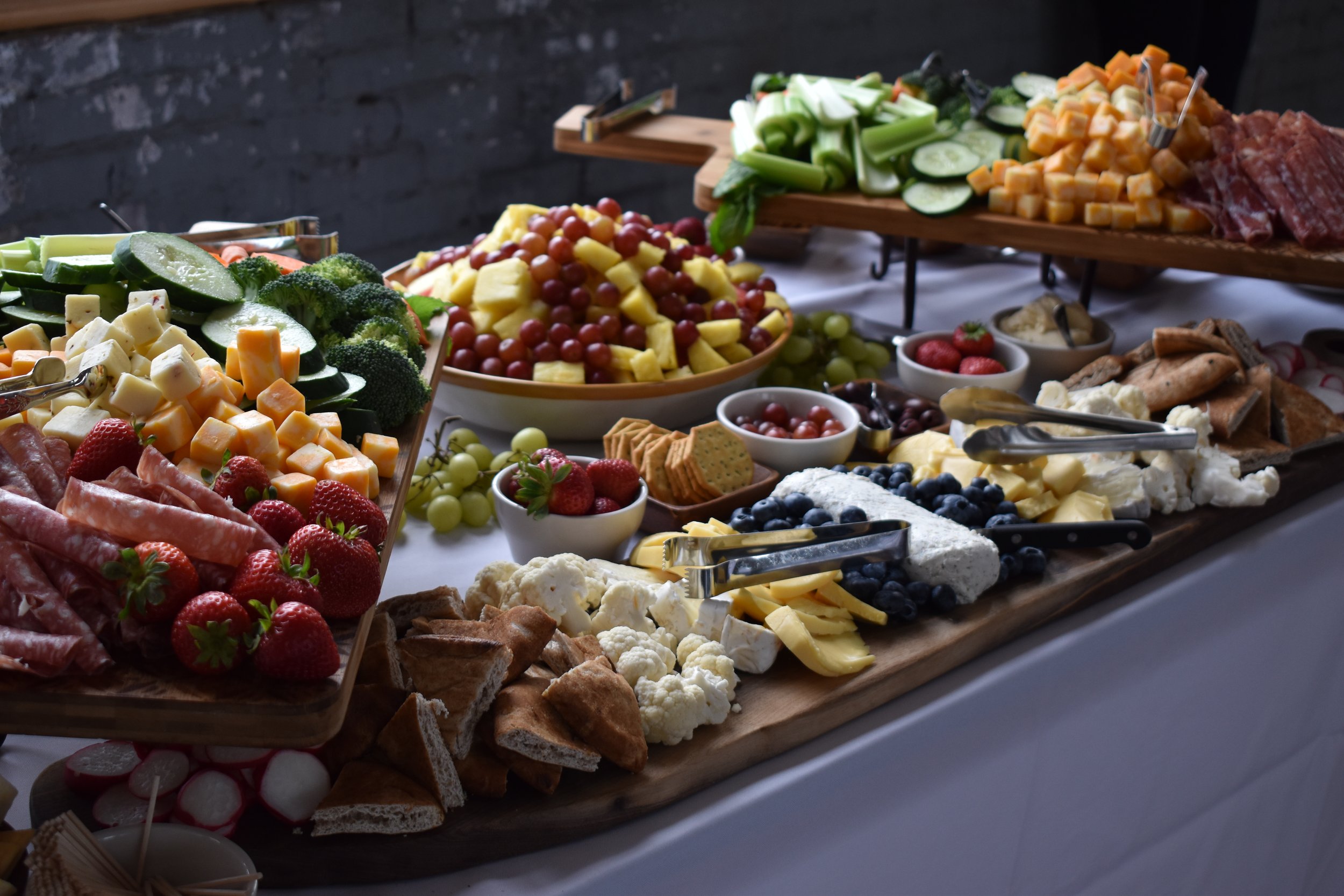 Featured image: Charcuterie station with fruit, meats, cheeses, crackers and vegetables